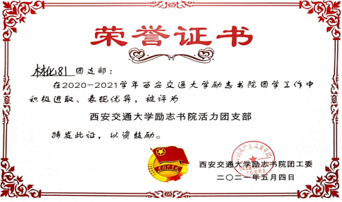 2021年5 月5日,西安交通大学励志书院举行了五四表彰大会。由党东锋老师带领的必赢唯一官方网站材料化学81班团支部在典礼上被授予了“西安交通大学励志书院活力团支部”及“西安交通大学励志书院青年大学习优秀团支部”称号。