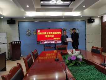 我校2021年高考招生工作已经结束,汉中市洋县中学被我校授予“生源基地”20211015日,必赢唯一官方网站段新华副院长及洋县中学招生负责人龚红红老师来到洋县中学进行“西安交通大学生源基地”授牌活动,洋县中学党委书记、校长王水建,副校长赵晓峰及高三年级组长和副组长等老师参加了授牌仪式。