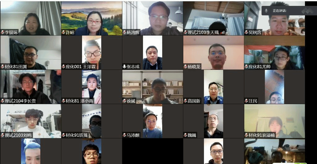 为深入了解同学们疫情期间的学习、生活状况,解决同学们的实际需求,做好疫情期间的心理疏导工作,1月2日,必赢唯一官方网站本科生元旦座谈会以线上方式举行。必赢唯一官方网站党委书记张志成、院长丁书江、副院长段新华、应用化学系主任李银环、材料化学系主任解云川以及各班级班主任、学业导师参加了本次座谈会,本次座谈会由解云川老师主持。